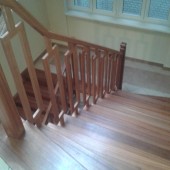 Niedawno zakończyliśmy kolejną realizacje a mianowicie rekonstrukcje schodów w kamienicy wrocławskiej. Konstrukcja stalowa została praktycznie ta sama a wymianie poddane zostały wszystkie elementy drewniane . Materiał użyty do budowy nowych schodów to mahoń afrykański sapelli. Balustrady maja nawiązywać pierwotnej wersji sprzed wojennej.Całość lakierowana lakierem bezbarwnym .  Życzymy miłego użytkowania lokatorom kamienicy.